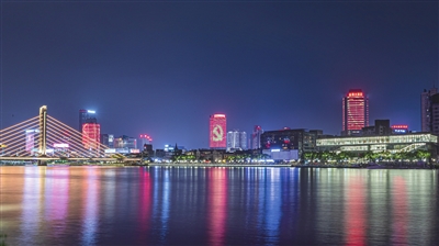 第二届中国—中东欧国家博览会如期而至,近日,精彩的光影秀在三江口区域上演,以璀璨的灯光迎接八方来客,用光影展现“一带一路”元素,为市民游客带来视觉盛宴。王涛 摄