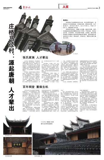 近代兄弟外交官张斯桂与张斯栒,民国女诗人、天台宗高僧张汝钊,国药号张同泰五代……从张氏家族走出去的名人名家数不胜数,如今,张氏后人亦遍布海内外。据村里的老人介绍,每年的4月1日,是马径张氏族人的“祭祖日”,不少白发苍苍的“张家人”都会在这一天从海内外赶回张氏祠堂相聚。